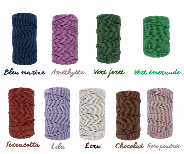 · Corde Origine UE pays limitrophe, 80% coton recyclé, 20% autres fibres recyclées, certifié OEKO-TEX® STANDARD 100 – Fournisseur MANSAS Macramé